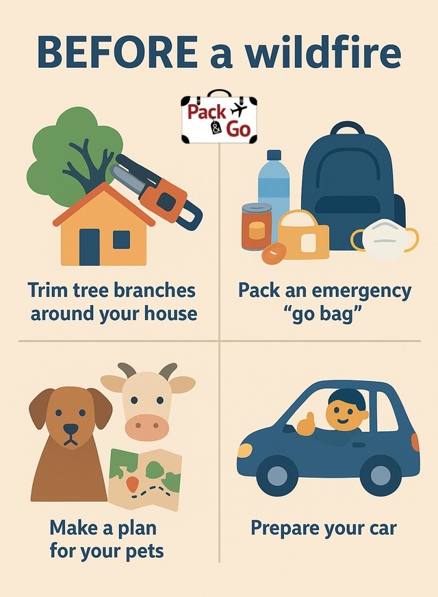 - If you have a vehicle, keep it fueled (at least half full, especially during wildfire season) and parked facing outward for a fast departure.